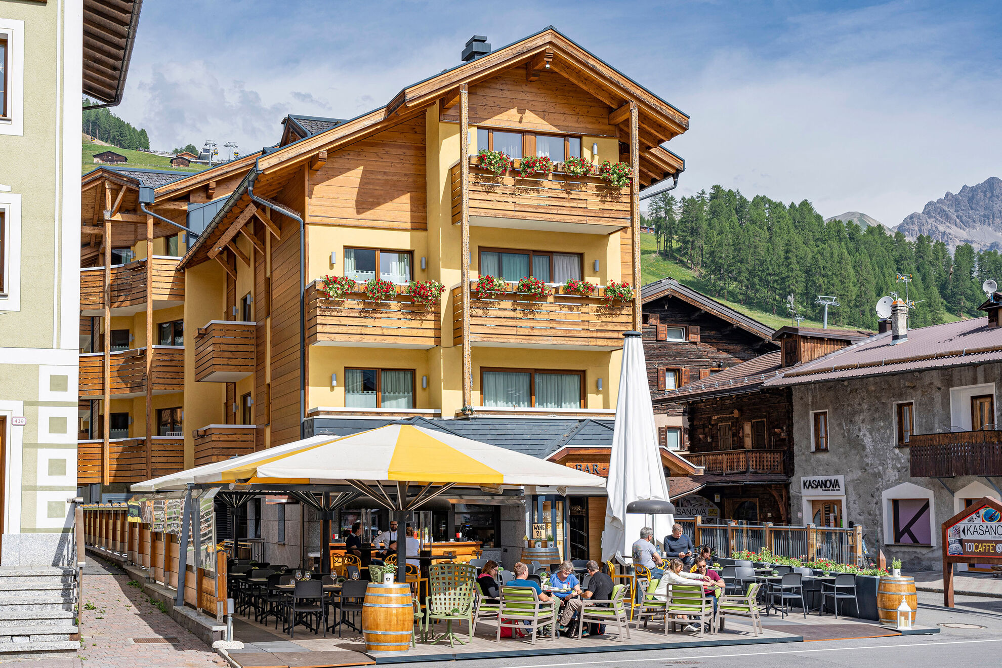 La sala del ristorante, luminosa e accogliente, regala una vista spettacolare sulla vallata di Livigno, mentre la terrazza esterna è il luogo ideale per sorseggiare un drink o vivere un aperitivo in un’atmosfera conviviale e autenticamente alpina.